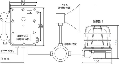 3. 防爆揚(yáng)聲器的連接:帶擴(kuò)音功能話機(jī)的兩根揚(yáng)聲器連線也無極性要求,可對(duì)調(diào)。