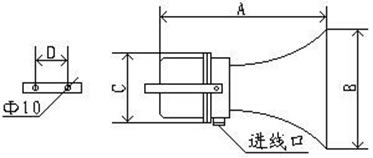 3. 防爆揚(yáng)聲器用兩只螺栓固定在支撐物上。防爆揚(yáng)聲器的接線端子在隔爆腔內(nèi),將電纜穿入進(jìn)線口擰緊。電纜外徑在8毫米以下,芯線截面積在0.5平方毫米以上的兩芯電纜均可。